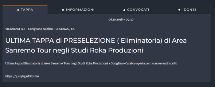 Restiamo a disposizione per l’eventuale replica e per pubblicare le risposte che mi giungeranno da parte dell’organizzazione certi che, anche la Commissione Artistica di Sanremo Giovani presieduta da Baglioni, potrebbe essere interessata a saperne di più .