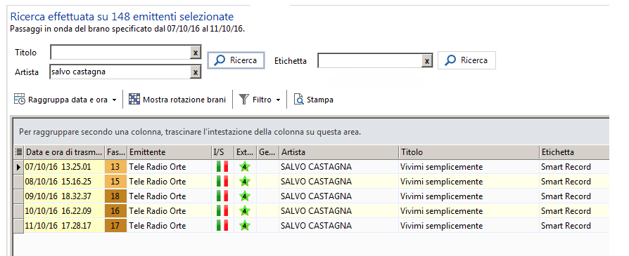 Anche noi di All Music Italia abbiamo ricevuto diverse mail e messaggi in cui ci chiedevano spiegazioni al riguardo anche perché, dati Earone alla mano, il brano di Castagna è trasmesso da una sola radio, Tele Radio Orte, e come potete vedere nello screenshot fatto attraverso Earone il suo brano dal 7 al 11 ottobre ha avuto solo cinque passaggi.