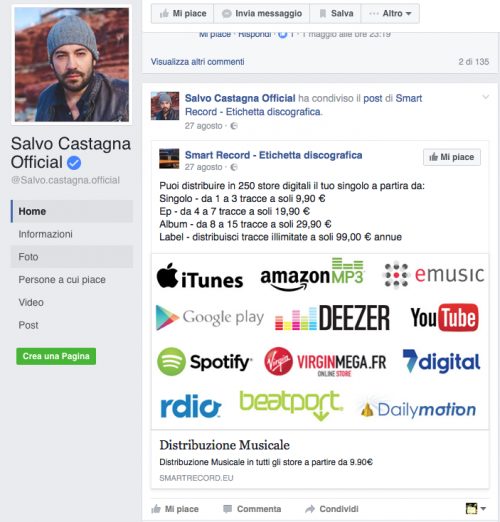 Andando a gironzolare per la rete sono disponibili varie informazioni pubbliche. Per esempio sappiamo che Salvo Castagna distribuisce la sua musica con l’etichetta Smart Records, azienda di Palermo che fornisce servizi digitali  e che è specializzata nel campo musicale ed ha sede in Inghilterra (qui il loro sito). Un’azienda che vende questi servizi (potete appurarlo con i vostri occhi dal sito e negli screenshot che trovate più in basso…):