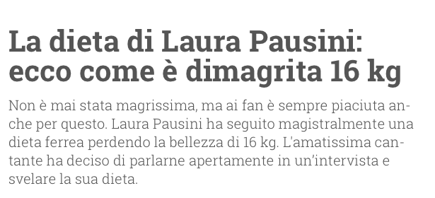 Ora, prima che qualcuno corra a cercare questa fantomatica e miracolosa dieta, sappiate una cosa. Laura non l’ha fatta nonostante qualche sito abbia addirittura messo il titolo come se fosse una dichiarazione della cantante.