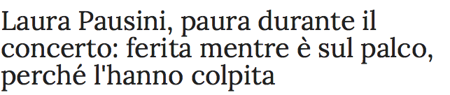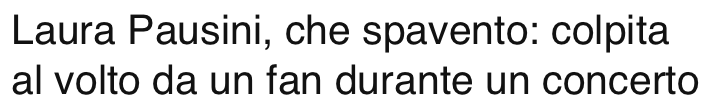“Laura Pausini, paura durante il concerto: ferita mentre è sul palco, perché l’hanno colpita” titola un famoso quotidiano nazionale e tutti a riprendere la notizia con titoli sempre più fantasiosi.