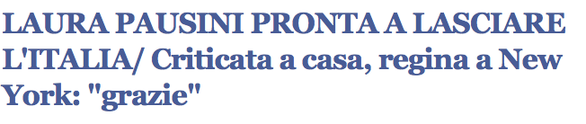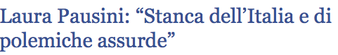 Una risposta da leggere attentamente perché si può chiaramente “sentire” che, tra una battuta e l’altra con il giornalista, Laura è già sul sito Alitalia e sta acquistando un volo di andata senza ritorno… Ecco qualche titolo uscito subito dopo…