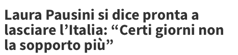 Nei prossimi giorni Laura sarà in Italia per nuove date nei Palasport ma si dice in giro abbia già chiesto dei giorni di stop per impacchettare casa e fuggire nella notte. Ah, io vado con lei!