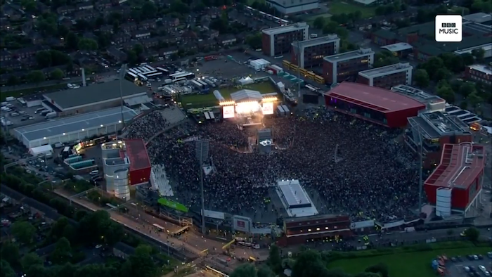 Chi di dovere dovrà fare di più di tutto questo certo, dovrà proteggerci, aiutarci a non vivere nel terrore, farci sentire al sicuro… ma questo compito non spetta alla musica, lei ieri sera ha svolto il suo bellissimo mestiere passando dalla trascinante Viva la vida dei Coldplay, tra i colori arcobaleno della pace spruzzati nel cielo, alla versione acustica di Over the raimbow intonata da Ariana Grande. 50.000 persone hanno cantato la vita sotto un cielo azzurro come fossero un unica voce.