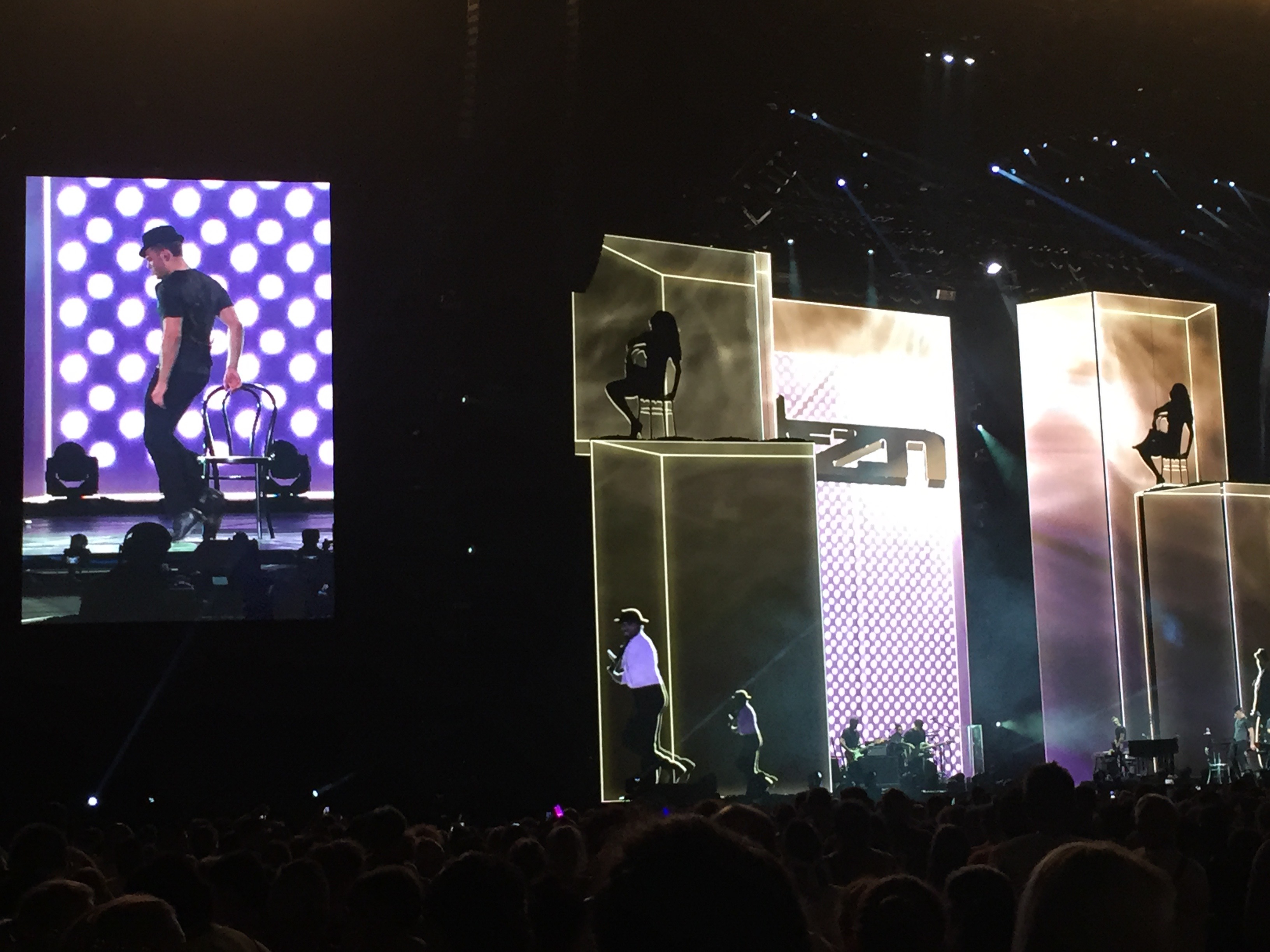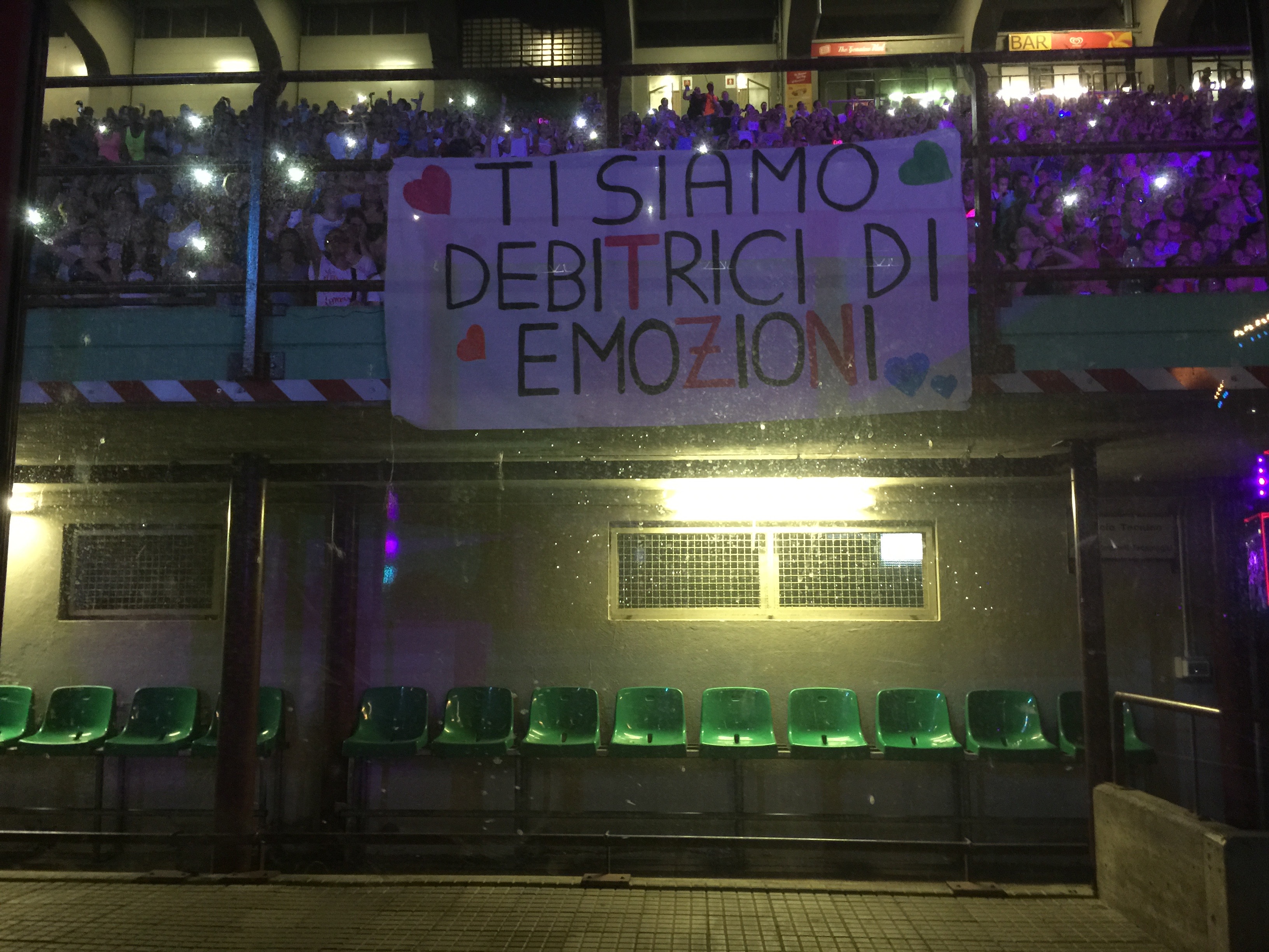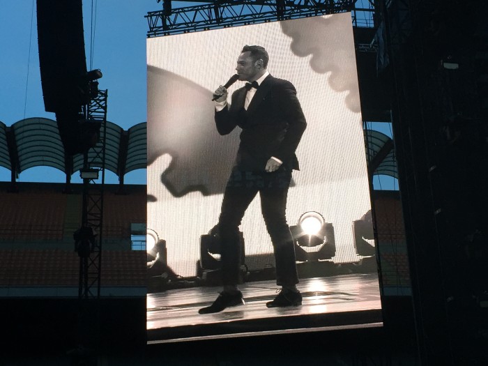 Dall’inizio, che vede il cantautore lanciato da un pacco sorpresa a 20 mt di altezza dal palco, alle luci, i led luminosi che ricreano la forma e i passi di danza dell’artista sulle curve dello stadio, e poi i mega schermi capaci di prendere letteralmente vita e mutare colori e forme riuscendo sempre a dare agli occhi quello che il cuore sta recependo in quell’esatto momento; Palazzi antichi ne La differenza tra me e te, tramonti per Sere nere, una gabbia luminosa in Senza scappare mai più fino alla città futuristica in continuo movimento di Stop dimentica solo per farvi qualche esempio… no, lo so non vi sto dicendo nulla di nuovo, e non lo faccio nemmeno quando vi dico che Tiziano appeso ad un elastico salta e balla sospeso sul palco… tutto già detto, scritto e letto.