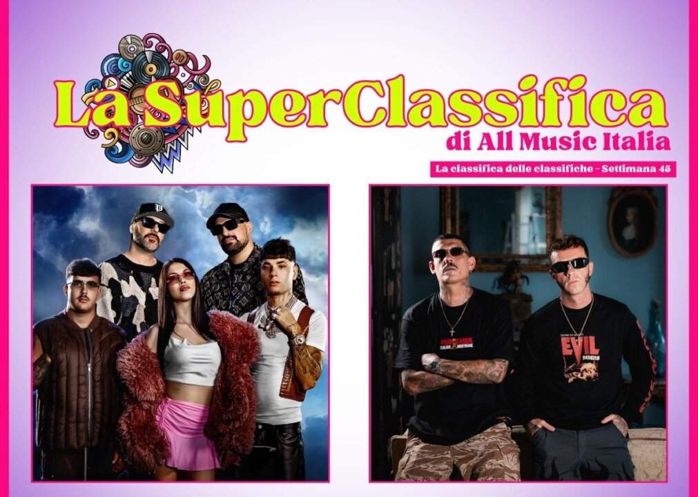 La SuperClassifica di All Music Italia settimana 45 (dal 03/11/2023 al 09/11/2023): questa settimana Salmo e Noyz Narcos, grazie al grande successo di “Cvlt“, salgono al primo posto e secondo posto della charts artisti salendo anche sul podio di quella dei brani.