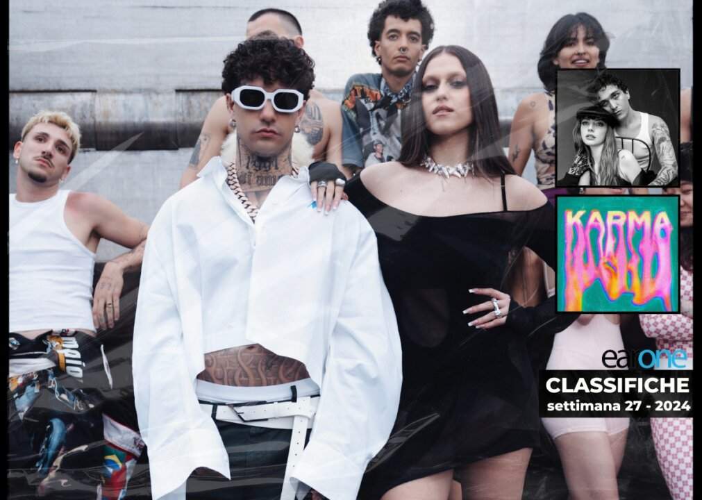 Stabile per la seconda settimana al primo posto della chart quello che pare essere, senza particolari clamori, il tormentone dell’estate 2024, Sesso E Samba di Tony Effe e Gaia. Guadagnano due posizioni e si portano alla #2 Tananai e Annalisa con Storie brevi. Chiudono il podio i The Kolors con Karma.