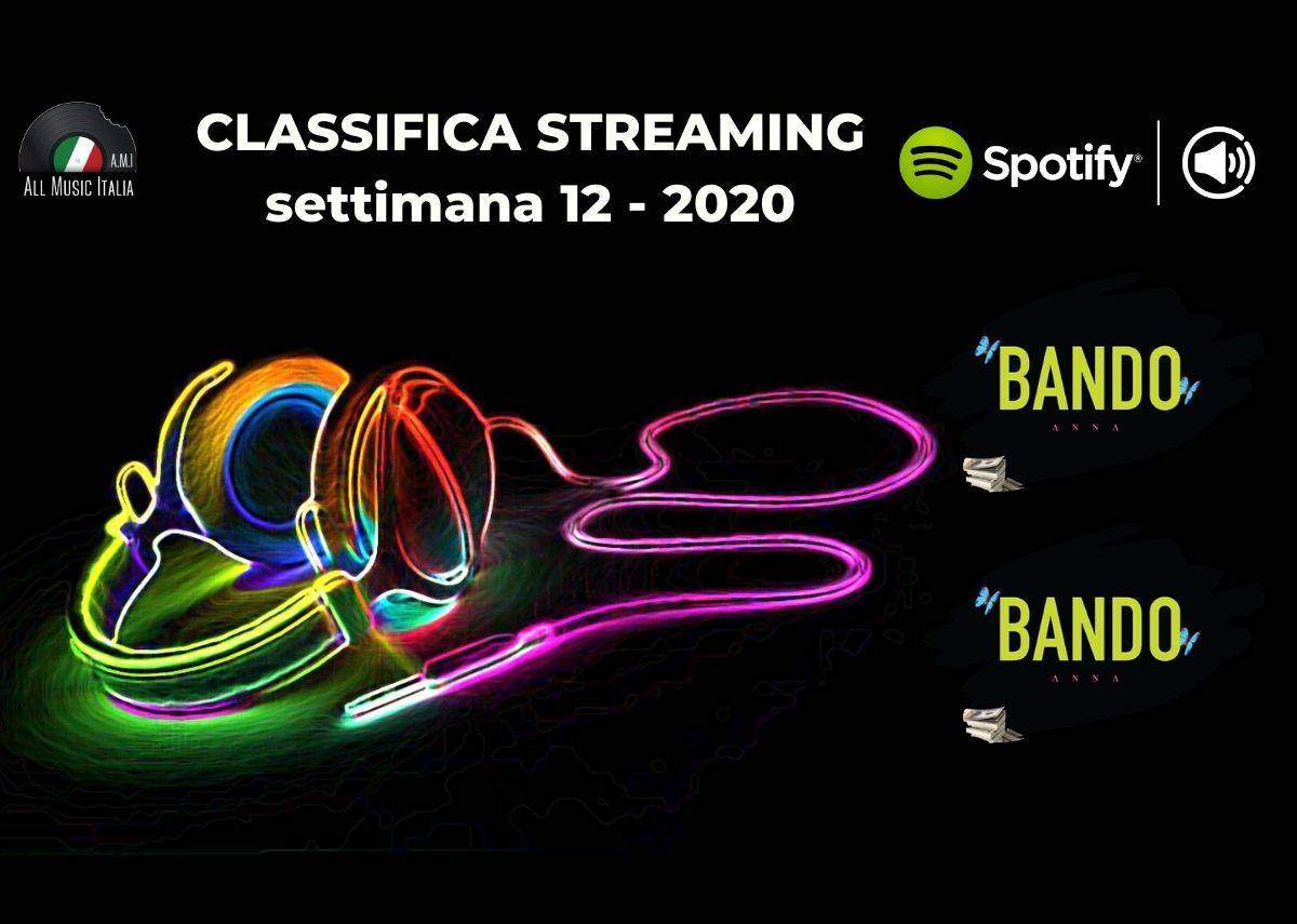 La classifica Spotify di questa settimana premia ancora una volta Anna che con Bando sta ottenendo ottimi risultati. E’, infatti, in testa nella Top 20 e nella Viral anche questa settimana.