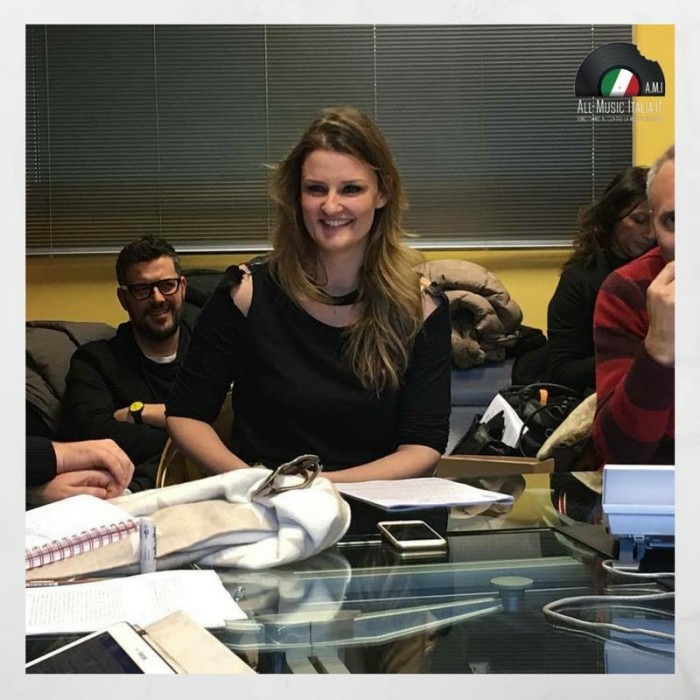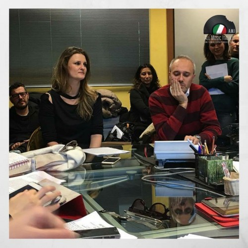 “Tendenzialmente sto dietro al mixer, non è facile parlare dei dischi, ma mi fa molto piacere presentarvi questo disco perché è un lavoro al quale abbiamo dedicato davvero tante energie, iniziato più di un anno fa, quindi non è iniziata di fretta in occasione di Sanremo. ci tengo a precisarlo. Abbiamo fatto un disco perché avevamo la necessità di esprimere un artista che ha molte qualità a prescindere dal nome che porta, è un disco che ha tantissime sfumature, temi, abbiamo fatto una selezione sui brani che inizialmente erano 50/60; sono canzoni scritte da lei, da me, molti autori hanno contribuito alla creazione del disco e in questo le tematiche sono state fondamentali, perché il nostro obiettivo era quello di creare un album che a livello di suono potesse essere diverso dai precedenti, quindi un po più elettronico, internazionale, più scuro nei colori, dove la tonalità su di lei fosse meno da interprete che cerca la nota più alta, quanto più espressiva e dopo un attento lavoro è emerso che l’espressività maggiore emerge nei toni medio bassi, dove è più naturale raccontare temi difficili. Abbiamo lavorato sulla ricerca del suono della voce quindi, e sui testi, risultati cruciali, perché non volevamo che il disco parlasse interamente d’amore, infatti alla fine si parla sì di sentimenti, ma a livello più ampio: rapporti tra persone che faticano a comprendersi, immigrazione, Dio. Sentimenti della vita in generale in senso lato.”