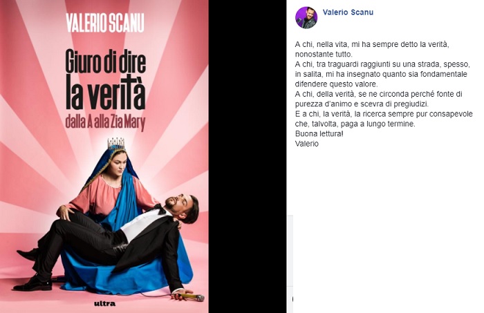 Giuro di Dire la Verità dalla A alla Zia Mary (Ultra Edizioni) è un racconto inconsueto. La presentazione è stata l’occasione per svelare alcuni dettagli di una sorta di enciclopedia personale che ha come filo conduttore Valerio e la verità, che nella vita controcorrente di Scanu è stato un monito da tenere ben chiaro e ben saldo.