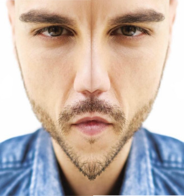 Prende la sua faccia, ci mette del nero intorno e cancella dei pezzi. A caso. Copertina fatta.