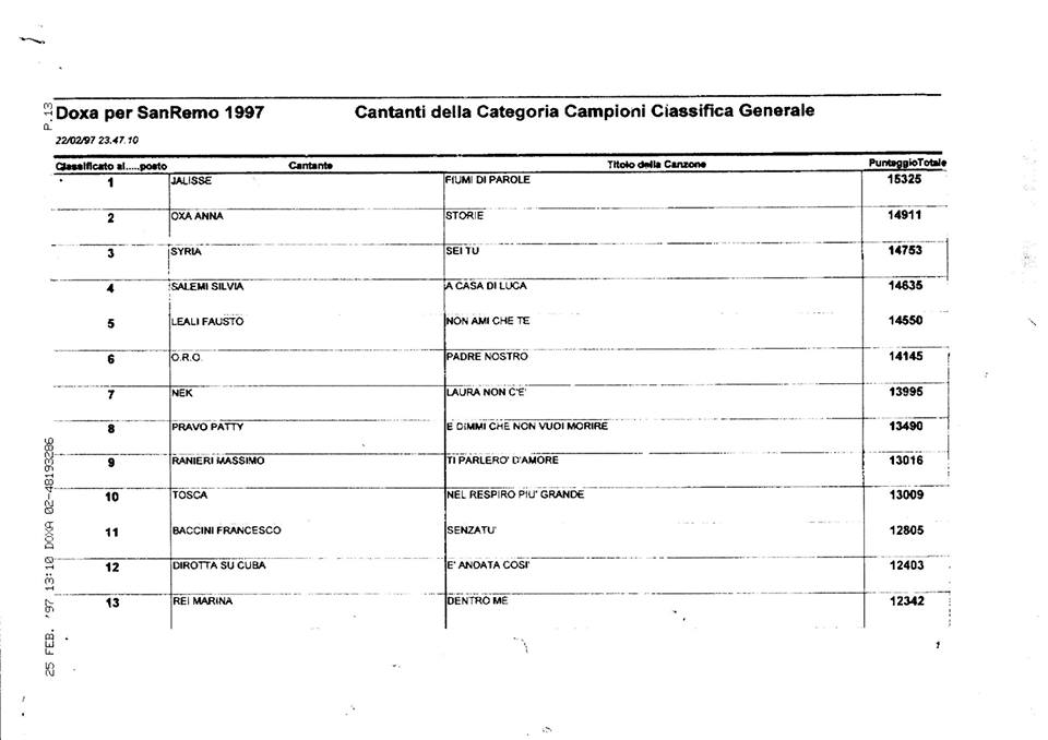 È dal 1998 che, ogni anno, nel periodo sanremese, qualsiasi trasmissione che tratti +/- superficialmente l’argomento, ci ricorda che i Jalisse hanno vinto il Sanremo ’97 con “Fiumi di Parole” e, tutte le volte, loro replicano affermando di non essere stati una meteora, ma di aver continuato attivamente la propria carriera.