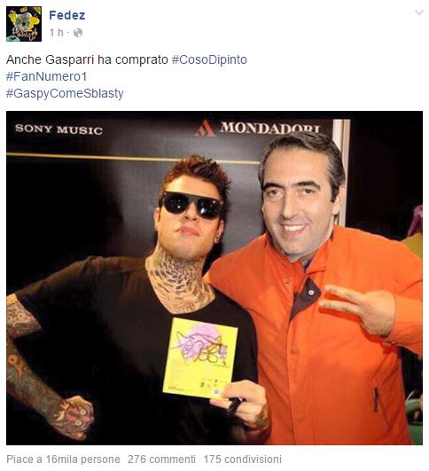 Fedez ha quasi unmilione e ottocento mila mi piace su facebook e ottocentoquarantasei mila follower su twitter.