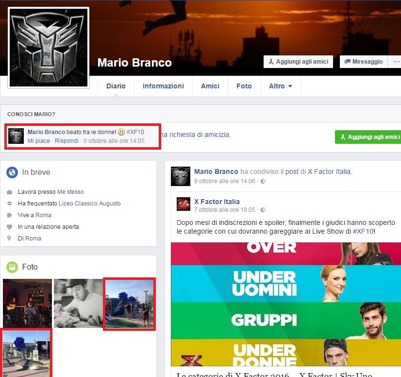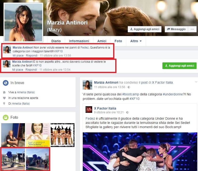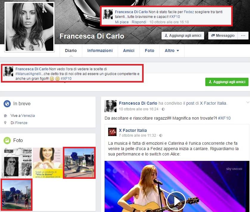 La Francesca, in bacheca, non fa altro che commentare XFactor come non ci fosse un domani. Unica alternativa le foto del promo di Sky Cinema.