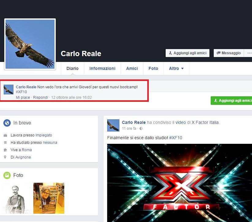 Carlo Reale, per onorare il suo cognome, ha come foto profilo un’aquila reale, fa l’impiegato ed è di Avignone, ma vive a Roma, un po’ come il Papa dopo la cattività avignonese.