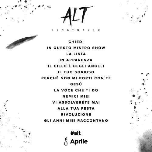 Alt, questo il titolo del nuovo album che è stato anticipato in radio dai singoli Gli Anni miei raccontano e Chiedi, arriva a tre anni dal precedente disco di inediti e sarà in pre-order su iTunes a partire dal 25 marzo.