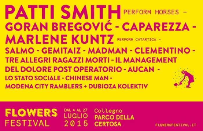 A Collegno sboccia il FLOWERS FESTIVAL con Patti Smith, Marlene Kuntz, Caparezza, Clementino, Max Gazzè