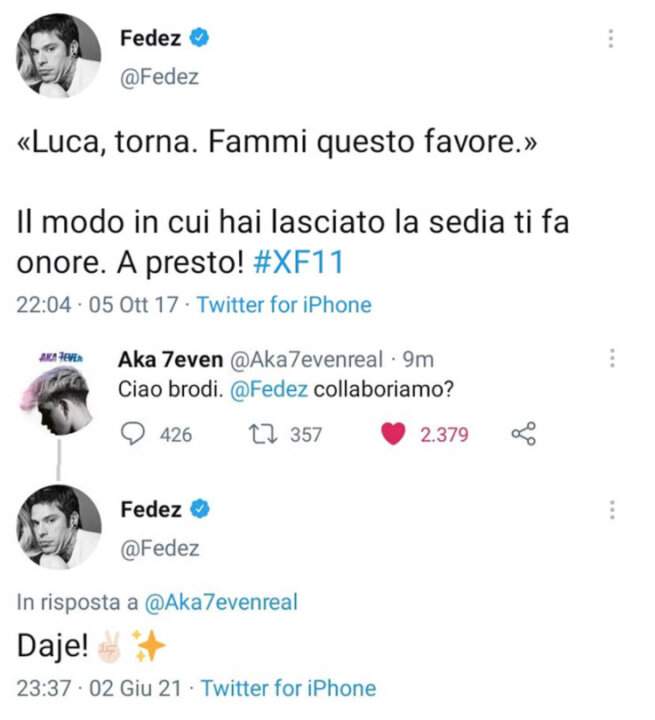 Nei giorni scorsi il giovane artista è andata a ripescare il Tweet di Fedez in cui il rapper gli chiedeva di tornare e gli ha risposto con un “Ciao brodi, collaboriamo?“. La risposta di Fedez, accompagnata da emoticon entusiaste, non si è fatta aspettare. “Daje!”