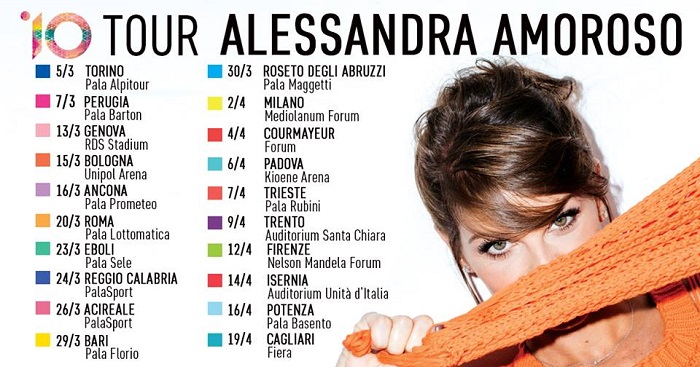 E’ ormai alle porte la pubblicazione di 10, il nuovo album di Alessandra Amoroso, con il quale la cantante pugliese festeggerà i primi dieci anni di carriera. Ieri Sandrina è stata festeggiata nella sede della sua etichetta discografica e le è stato consegnato un premio che simboleggia i 27 dischi di platino che ha ottenuto in questa prima decade di carriera. Oggi, invece, ha presentato alla stampa il nuovo album e il tour che, per la prima volta, toccherà tutte le 20 regioni italiane.