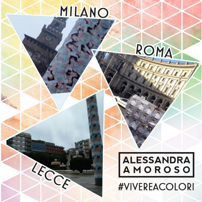 “Volete scoprire altre tracce del mio nuovo album? Correte nei tre luoghi che vedete qui sotto, fotografate le cartoline che troverete lì e condividetele con la Big Family con l’hashtag #VivereAColori.