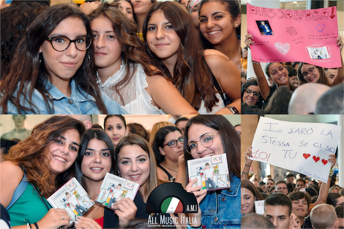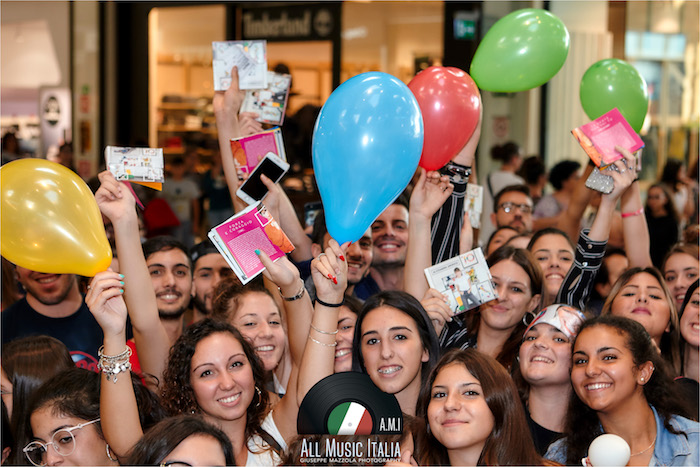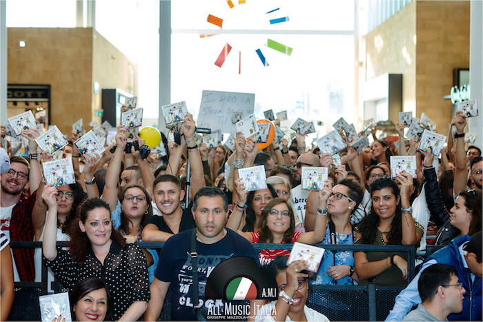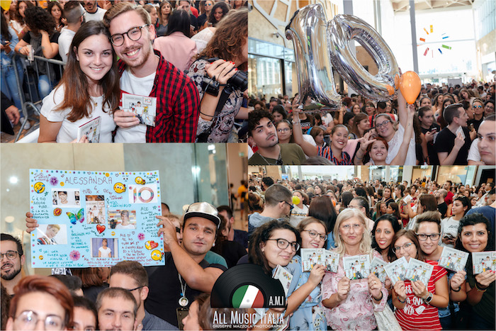 2700 persone stipate in ogni angolo del Centro Commerciale FORUM (che come sempre ringrazio per avermi ospitato come reporter), urla, canti, palloncini e cuori… tanti giovani in coda dalle prime ore del mattino, tantissimi adulti con le canzoni del nuovo album impresse a memoria nelle labbra e sparse nell’aria a squarciagola.