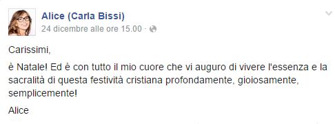 Visto il periodo, Alice non perde l’occasione per augurare buon Natale a tutti i suoi amici dei social network: