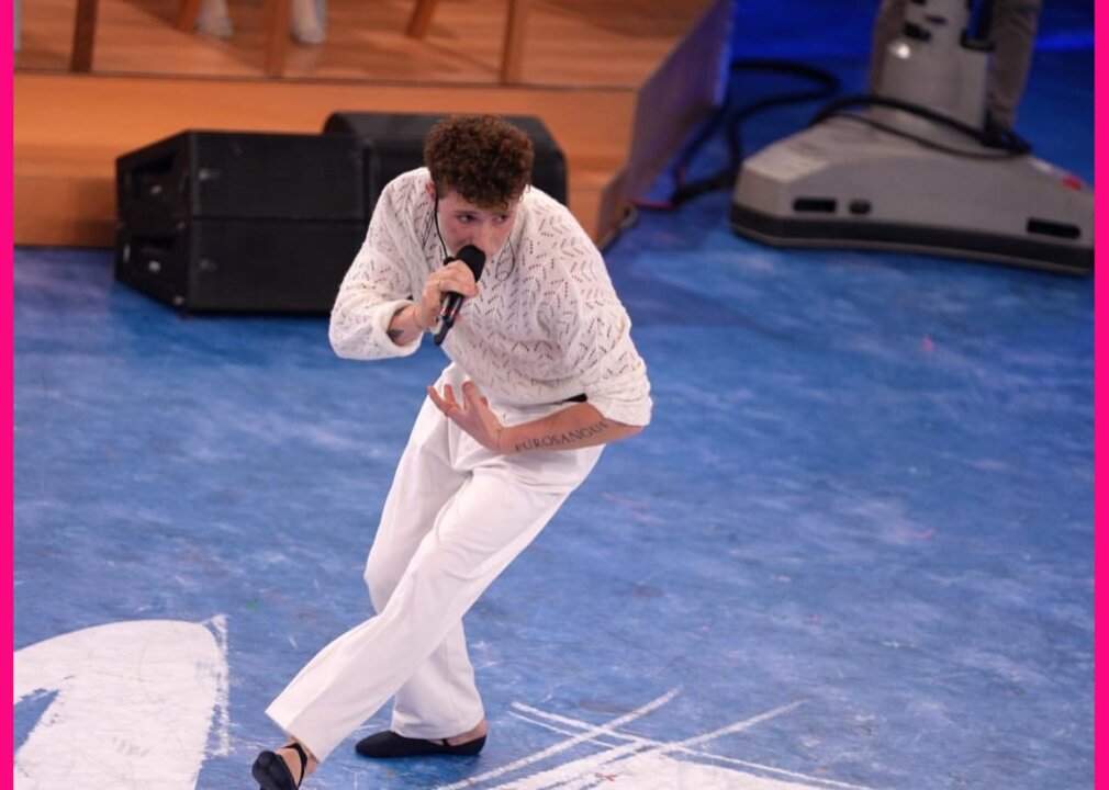 E così il giovane artista canta live la sua Ballerine e Guantoni.