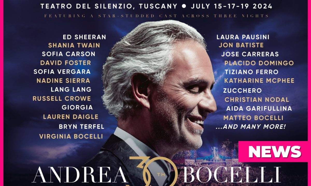 In occasione dei suoi trent’anni di carriera, Andrea Bocelli celebra questo importante traguardo con tre giorni di musica sulle colline toscane, che vedranno alternarsi un numero senza precedenti di superstar internazionali, pronte ad arrivare in Italia solo per Andrea Bocelli 30: The Celebration.