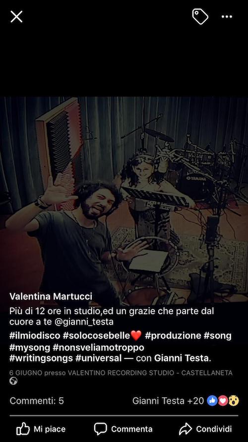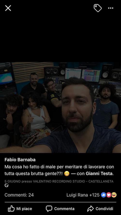 Se è vero quello che sostiene, e non è un’accusa, come si spiega il fatto che a GIUGNO corrente anno (2018), fosse in studio di registrazione con la vincitrice di Area Sanremo V. Martucci e F. Barnaba, il tutto documentato PUBBLICAMENTE su facebook dai vari protagonisti della vicenda, addirittura mentre la vincitrice cantava in studio (la vincitrice ha sostenuto fino a settembre di essere prodotta da lui e da altri soggetti).