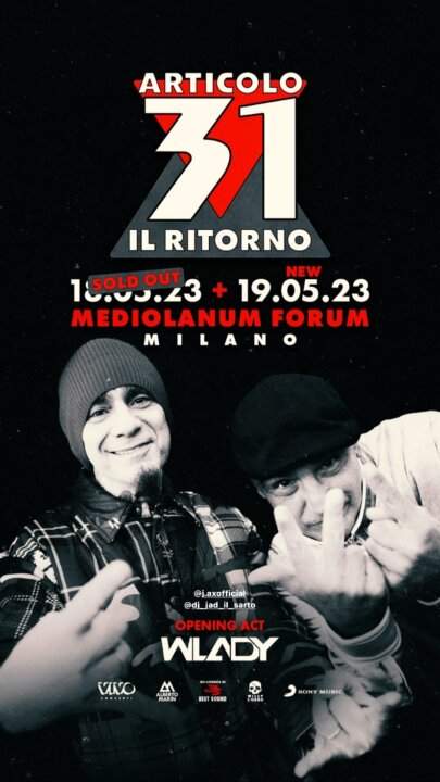 Il Ritorno insieme di J-Ax e DJ Jad è già un successo. Sono bastate tre ore per mandare sold out il concerto Articolo 31 Il Ritorno annunciato per il 18 maggio al Mediolanum Forum. I biglietti, messi in vendita alle 16 del 20 dicembre, sono andati subito esauriti online e non hanno fatto in tempo ad arrivare nei negozi fisici.