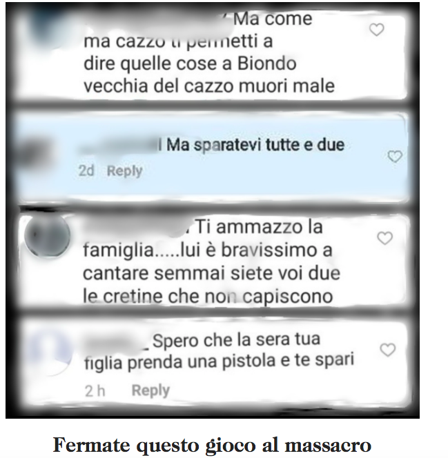 Sappiamo tutti quelli della mia generazione che cos’è il web al giorno d’oggi… è un posto dove hai la possibilità di farti conoscere, ma ci sarà sempre chi ti critica e chi ti ama… quando queste critiche diventano insulti anche pesanti o accanimenti contro specie diventano sbagliati, purtroppo essendoci tanta libertà di espressione ognuno fa un po’ come gli pare… spero che un giorno questa cosa venga regolamentata, e spero anche che vista questa esperienza che è successa qui dia un buon esempio, sia una cosa di sblocco…”