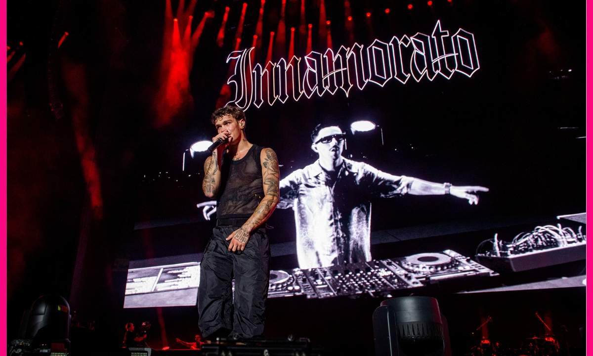 Sul palco allestito a cattedrale gotica, ispirata nello stile e nel lettering all’Innamorato che Blanco ha tatuato sulla schiena va in scena lo show pensato dall’artista assieme all’architetto Fabio Novembre e al suo Studio, che hanno immaginato e curato il concept dell’allestimento così come nel precedente tour.