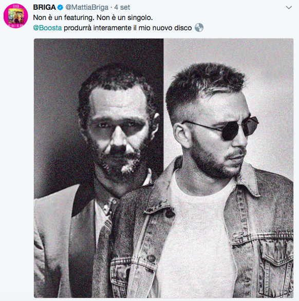 La vera bomba lanciata però sui canali social dell’artista riguarda la persona che curerà l’intera produzione del nuovo album. Il nuovo produttore artistico di Briga sarà infatti Boosta.
