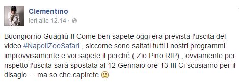 Era già stato annunciato per sabato 10 gennaio, ma, a causa del lutto per la scomparsa di Pino Daniele, Clementino, in segno di rispetto, aveva rimandato l’uscita del suo nuovo video Napoli Zoo Safari, estratto da Mea Culpa (Gold Edition), riedizione di Mea Culpa uscita a settembre 2014 per celebrare il disco d’oro.