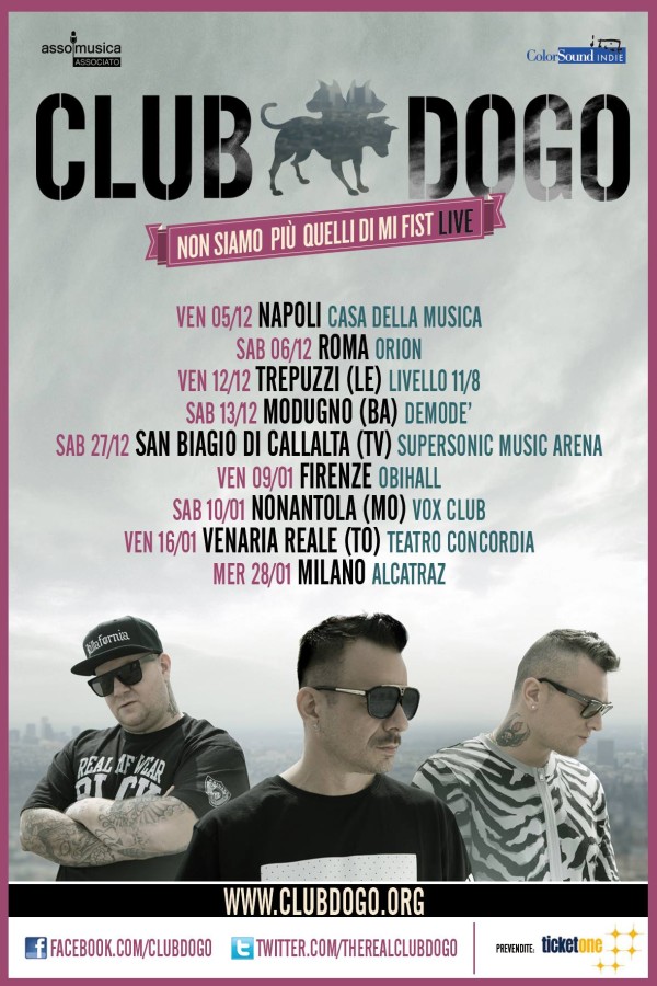 Grande fermento in casa Club Dogo: dopo l’annuncio delle date dell’instore promotion, le collaborazioni con Arisa e Lele Spedicato dei Negramaro, ora annunciano le date del tour invernale anticipato dal live evento del 19 settembre alla Fabrique di Milano (ingresso gratuito, fino ad esaurimento posti) in collaborazione con Beck’s Italia.