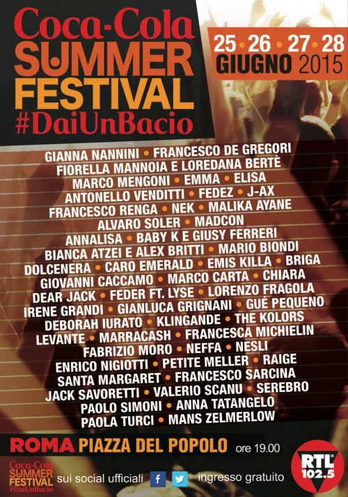 Come vi avevamo preannunciato qui sta per tornare il Coca Summer Festival, la manifestazione ideata dalla Fascino di Maria De Filippi che, con la partnership di Rtl 102.5, elegge da tre anni a questa parte La Canzone dell’estate.