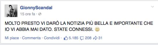 Ieri tramite la sua pagina ufficiale su Facebook Gionny (che avevamo avuto l’occasione di intervistare qualche mese fa, clicca qui se vuoi rileggere l’intervista) in modo criptico ha annunciato una grossa novità ai suoi fan.