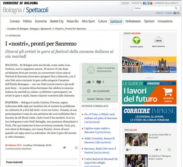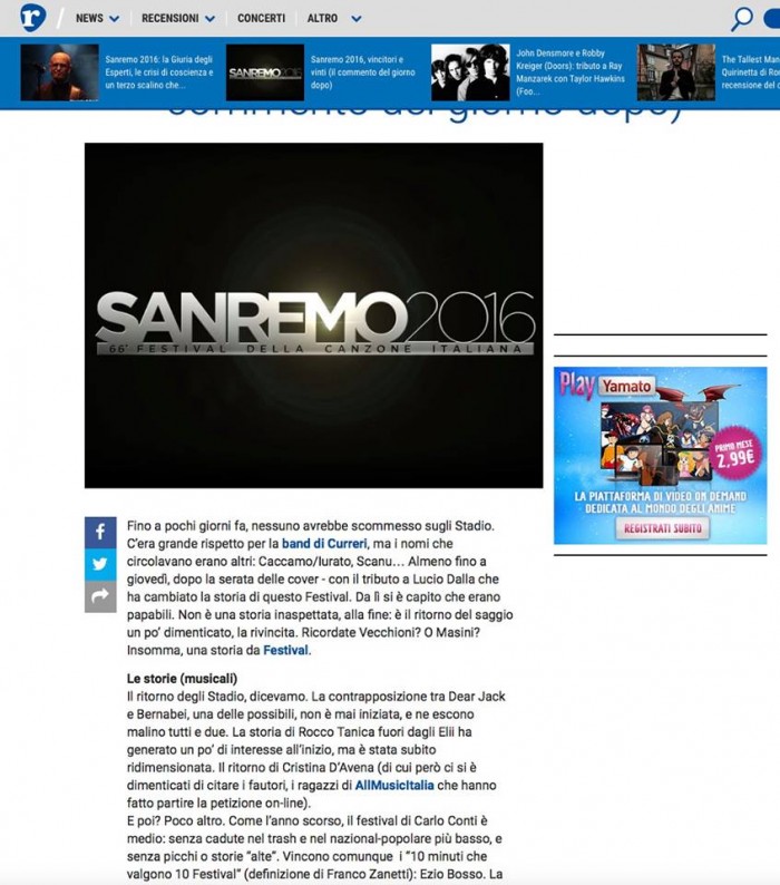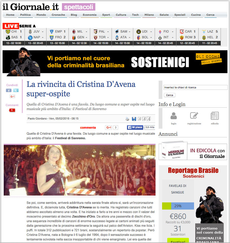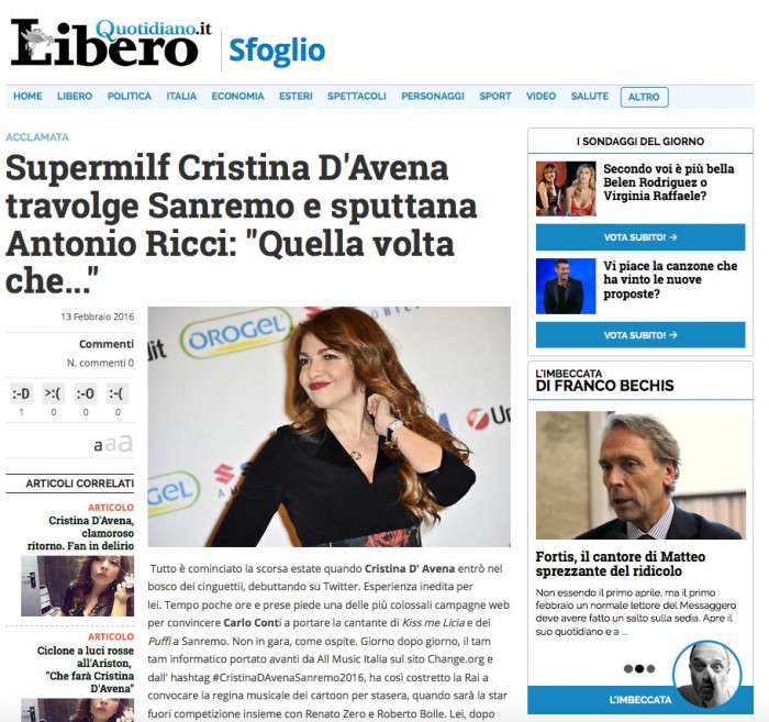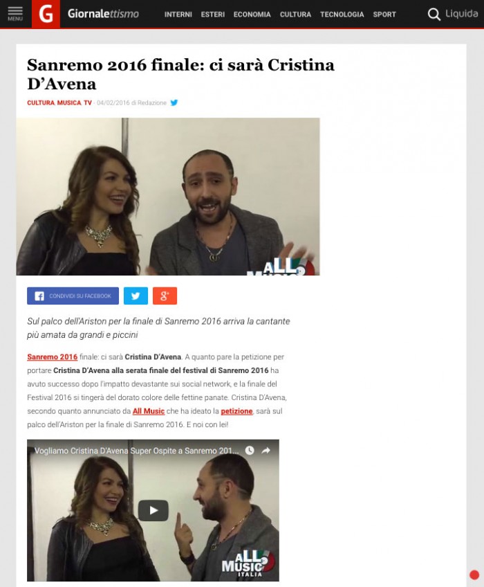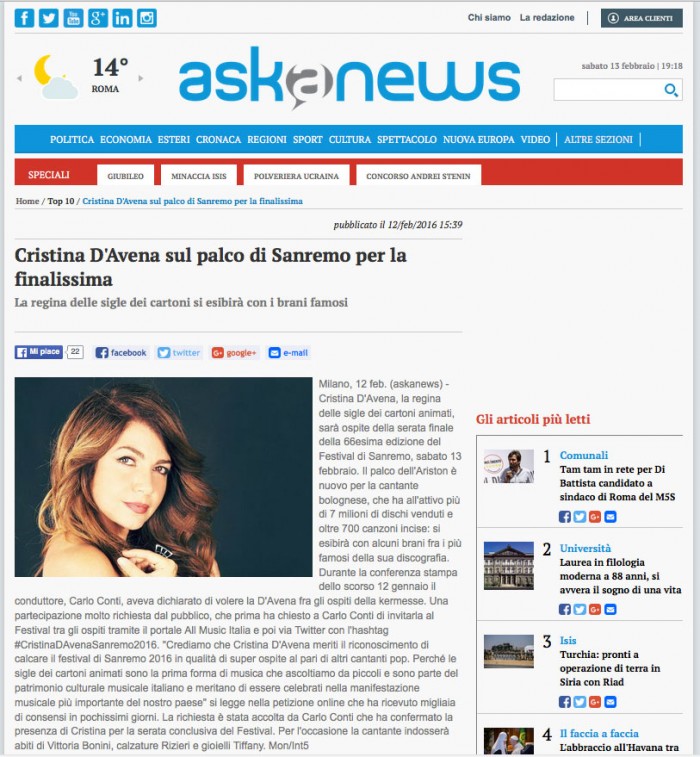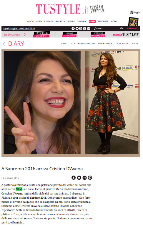 All Music Italia lanciò un anno fa la petizione per portare la regina delle sigle dei cartoni animati nella kermesse musicale più importante d’Italia e dare il giusto riconoscimento a un artista con numeri record: 7 milioni di dischi venduti, 312 pubblicazioni, 721 brani incisi, 35 anni di carriera, 5 dischi di platino, 1 disco d’oro.