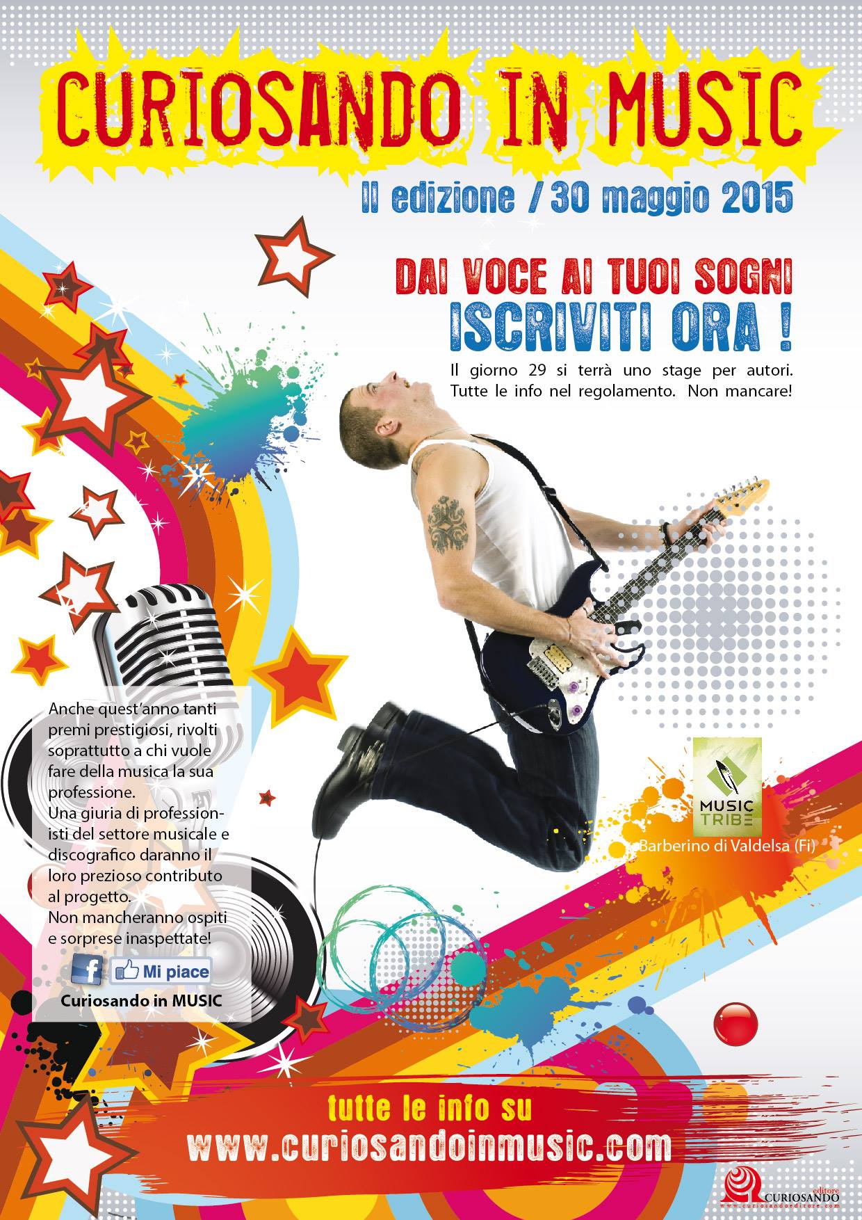 Si terrà il prossimo 30 maggio 2015 la grande serata di Curiosando in Music, importante contest canoro (organizzato dalla Curiosando Editore) nato dall’incontro tra Maurizio Palumbo, editore appassionato e amante della musica, e Marco Ciappelli, paroliere e professionista del settore discografico.