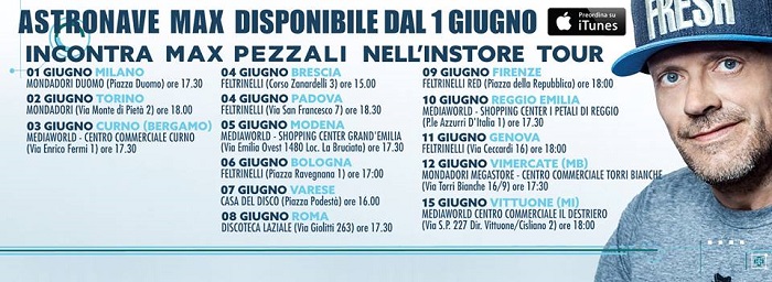 Sempre a partire dal 1° giugno Max Pezzali incontrerà i fan nell’instore tour che toccherà le principali città italiane.