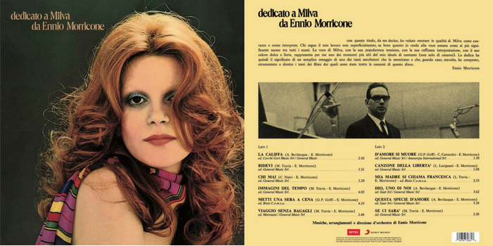 Dedicato a Milva da Ennio Morricone, questo il titolo dell’album, uscì nel 1972 in cassetta e lp. Da allora è stato ristampato solo due volte, ma mai in vinile… nel 1992 in cd con una differente copertina, e nel 1999 inserito in un cofanetto comprendente 13 album della discografia di Milva.