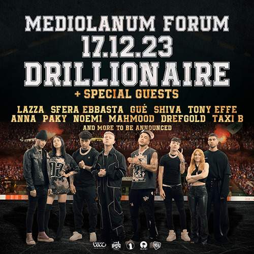 Dopo lo straordinario successo dell’album d’esordio “10“, già certificato disco di platino, Drillionaire ha annunciato uno speciale appuntamento live, prodotto da Vivo Concerti, che si terrà domenica 17 dicembre al Mediolanum Forum di Assago e che è andato sold-out in meno di quattro ore dalla messa in venduta dei biglietti su vivoconcerti.com.