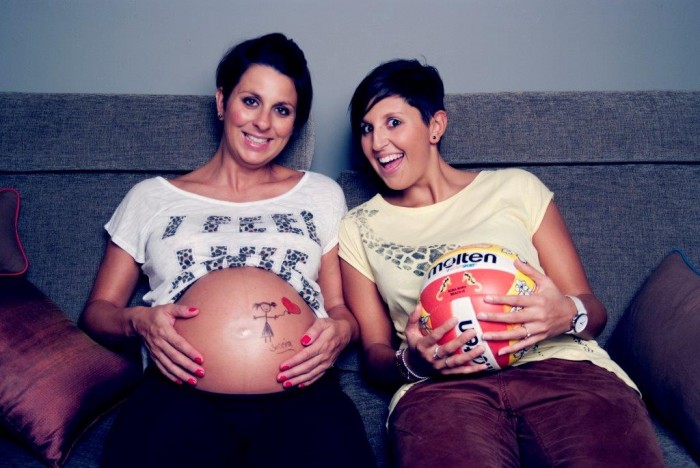 Io con la palla da pallavolo (lo sport della mia vita) e mia sorella in attesa della mia nipotina (l’amore della sua vita)!!