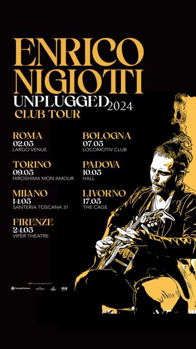 Con un’essenziale formazione in trio (Enrico Nigiotti, Mattia Tedesco alle chitarre e Fabiano Pagnozzi alle tastiere), “Unplugged 2024 Club Tour” sarà un viaggio incentrato sulle canzoni e sulle storie che si celano dietro le canzoni. Il risultato? Uno spettacolo fatto di musica e di aneddoti unici, che si fondono in un racconto intimo e acustico che non ha bisogno di effetti speciali.
