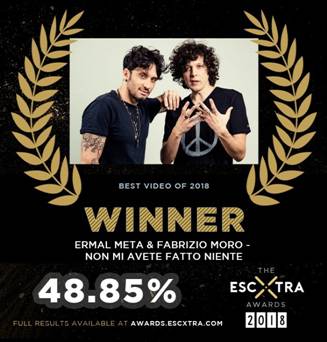 Nei giorni scorsi è stata annunciata la conquista dell’Escxtra Award 2018. Il video ufficiale del brano di Ermal Meta e Fabrizio Moro ha vinto la categoria Best Video con il 48,85% dei voti. Vittoria netta anche perché il secondo posto se l’è aggiudicato la rappresentante armena Iveta Mukuchyan con il video di Armenian Girls e il 15.8% delle preferenze. Terzo posto per il tedesco Michael Schulte e Never Let You Down con il 12,7% dei voti.