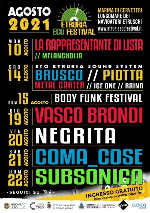 “Come avevamo anticipato, dopo la scorsa edizione in piena pandemia, Etruria Eco Festival festeggia i suoi 15 anni con un cast di artisti davvero straordinari” – dichiara Alessio Pascucci, Sindaco di Cerveteri – “un cartellone ricercato, che vedrà esibirsi band che hanno caratterizzato e continueranno a segnare il panorama musicale nazionale e internazionale in maniera indissolubile“.
