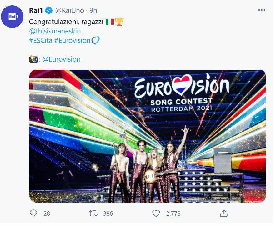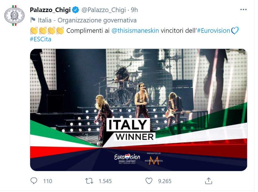 Iniziamo dai post istituzionali, come Palazzo Chigi, Rai Uno ed Eurovision.