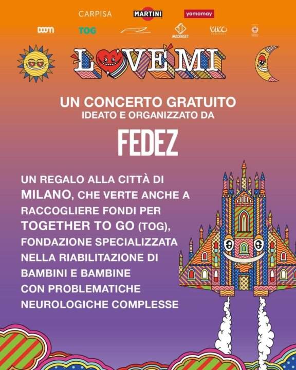 L’organizzazione di LOVE MI è curata da DOOM ENTERTAINMENT e la parte di produzione da VIVO CONCERTI. Il concerto è stato reso possibile anche grazie al sostegno degli sponsor: MARTINI, brand icona dell’aperitivo italiano che da sempre sostiente la musica e celebra i momenti di convivialità, divertimento e condivisione; Yamamay, brand leader italiano nella produzione e distribuzione di prodotti di intimo, lingerie, pigiameria e moda mare; Carpisa, azienda italiana dall’anima internazionale e rinomato marchio, leader nella produzione di borse, valigeria e accessori moda.