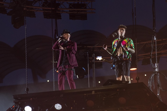 E la scaletta del concerto è proprio un susseguirsi di hit e collaborazioni, quasi a voler festeggiare con tutti gli amici che hanno contribuito al successo di questa coppia del rap italiano.