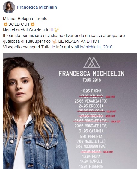 Cresce l’attesa, anche se ormai manca sempre meno. Il Tour di Francesca Michielin è ai nastri di partenza e, notizia di questa giorni, già cinque tappe del suo tour risultano sold out.